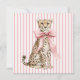This cute note card features a cheetah wearing a girly pink bow on a background of matching stripes. Personalize the front with your choice of name or special text.