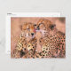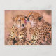 Djurkort som visar ett cheetah-par i södra afrikan. Fuktan (Acinonyx jubatus) är ett stort kattdjur som bebos av större delen av Afrikan och delar av Iran. Tuffen kan gå snabbare än något annat landdjur, så fort som 112 till 120 km/h (70 till 75 km/h). i kort avstånd brännarna upp till 500 m (1 600 ft) och kan accelerera från 0 till 100 km/h (62 mph) på tre sekunder. Dess huvudsakliga jaktstrategi är att springa snabbt ber, t.ex. olika arter av antelopar och harar. Nästan alla aspekter av cheetahs anatomi har utvecklats för att maximera dess framgångar i jakten, resultatet av ett utvecklingsbart tävling med dess be i arm. På grund av denna specialisering är emellertid fusket dåligt rustat för att försvara sig mot andra stora rovdjur, med snabbhet som det främsta elaket för försvar.