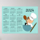 Chef Baker Design 2024 Kalender Poster med anpassningsbar bakgrundsfärg.