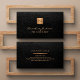 Luxury elegant tittar en privat privatkonst med monogrammad professionell och med ett metallfack av koppar över en snyggt med svart bakgrund av läder (TRINTED NOT REAL LEATHER). ++++++++++++++++ A minimalistisk modern affärskort för en restaurang, catering, bagare, y- eller konditor eller privat party-kock.