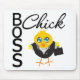 T-shirts, hattar, knappar, mugg och andra Chickar med söt chick av gult, klädda i svart kostym, pärlor och med en söt rot. Perfektens gåva till karriärkvinnor och chickar som är CHEF!