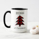Vet du vem som helst som helst vill vara ansvarig för festligheterna i kärlek? Då skulle perfekten vara det humoristiska trendiget och det moderna kaffet mugg med en enkel svart och röd plaid Julgran med vit rustik krittypografi. Perfektens gåva till julens Chef i ditt liv.