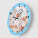 En roligt akrylväggsklocka som säkert kan göra vilket rum som helst ljusare. Det yttre kant är ett ljusblått ring med svarta siffror. I mitten finns ett område för ett personligt foto och en personlig text. Kant färg kan anpassas.