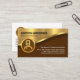 Täcket har en guld-vågdesign med en övre guld lagrar och en nedre bruna biet. Att riva guld-vågen är en guld Chef-logotyp som du kan använda med ditt prestigefyllda namn och jobbtitel överst. I det nedre högerna finns namn och kontaktuppgifter. På andra sidan, i ett vitt omslag, längst upp finns logotypen guld, följt av ditt prestigefyllda namn, kontaktuppgifter och ett sloganalternativ. Ett kort för underbar professionell för dem i livsmedelsbranschen.