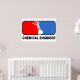 Kemiteknisk text och en röd, vit och blå design med en bägare är en unik presentdesign för ingenjörer och ingenjörsstudenter.