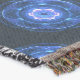 Har en blå tonad, avbruten återgivning av Tjerenkovs strålning i vatten. Den blå glöden i vatten som omger kärnreaktorerna är Tjerenkovs strålning. När en laddad partiklar passerar genom ett medium med en hastighet som är högre än ljushastigheten i detta medium, produceras en svag strålning av mediet. I vatten laddas partiklar upp vatten molekyler, som sedan återgår till sitt normala tillstånd genom att avge blåljus. Eftersom partikeln är snabbare än ljushastigheten i vatten kan den utlösa en kaskad av fotona som är i fas med varandra och som på ett konstruktivt sätt kan påverka bildandet av en synlig blå glöd. Detta är något jämförbart med en sonic boom i atmosfären. Denna effekt observerades av den ryske vetenskapsmannen Pavel Cherenkov 1934 när han ombads att undersöka radioaktivitetens effekter i vätskor. Cherenkov vann Nobelpriset 1958.