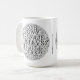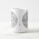 Varje sida av denna underbara mugg visar ett litet olikt ordmoln som innehåller alla tecken av den Cherokee Syllabaryplusen den fyra ord - tsalagien, osiyoen, wadoen och ulihelisdien vilka översätter till Cherokee, hej, tackar dig och välkomnar.