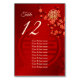 Det här kinesiska bordsnumret för säten i bröllop har röda körsbärskort och en gyllene lyckosymbol för dubbla på en skakande röd bakgrund. Med textrutor lägger du till en lista över gästnamn.