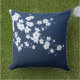 Cherry Blommar Navy Blue White Blommigt Kudde