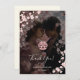 Det här kinesiska bröllop-tackkortet innehåller ett personligt bröllp-foto och dammiga blommar för körsbär med rosa. "Tack"-rubrik i ett modernt handskript.