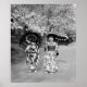 Gamla 1920-talets foto av japanska barn, i traditionell klänning med paraplyer, som går bland körsbärare blommar. Tidal Basin, Washington, D.C. Photograph, 28 mars 1925. National Photo Company Collection. Originalsubstrat för LOC: negativt glas.