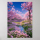 Cherry Blommars, Rosa Flowers och Gentle Stream Poster