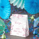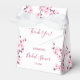 Denna presentask för bröllopsfest med körsbärsblom tema har vackra rosa körsbärsblommor på vit bakgrund. Botanisk ask med tack-text, brölloppsfest-text och ett anpassat namn på bruden i elegant kalligrafisk stil.