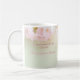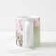 This mug has the name of the Japanese Cherry Blossom Princess Konohanasakuya on the left hand side with delicate white and pink cherry blossoms hanging down. The background is a pastel green, delicate in tone and elegant behind the lovely pastel cherry blossoms. The right hand side has a noble green eyed cat looking up at the cherry blossoms with adoration. This is a lovely gift for celebrating spring anywhere in the world.