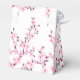This custom baby shower thank you favor box features pretty pink cherry blossom branches on a white background. The thank you words are written in an elegant hand lettered script.