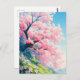 Cherry Blossom Tree on Sunny Green Hillside Vykort