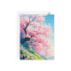 This breathtaking design features a massive, ancient cherry blossom tree that stands as a vibrant landmark on a sun-drenched hillside. Rendered in a lush, textured watercolor style, the tree is heavy with dense clusters of soft pink blossoms that create a cloud-like effect against the clear, bright blue sky. Below the tree, the rolling green hill is covered in a carpet of fresh grass and delicate white and pink wildflowers that seem to glow in the afternoon light. In the distance, soft blue mountain peaks rise through a hazy mist, adding a sense of height and tranquility to the expansive landscape. The overall aesthetic is bright, optimistic, and full of natural grace, making it an exceptional choice for anyone who admires Japanese floral landscapes and the peak of spring's beauty. This elegant cherry blossom postcard is a perfect choice for sending a "thinking of you" sunshine note or a meaningful greeting to a friend who loves the peaceful beauty of nature. You might choose to use this artistic card for a spring-themed garden party invitation or to celebrate a professional milestone with a touch of natural elegance for your colleagues. It also makes a beautiful decorative piece for an office desk or a stylish addition to a gallery wall as a small token of spring's arrival. This versatile design is also an excellent choice for a housewarming message, a wedding thank you note, or as a heartwarming way to share a message of joy for any situation or event.