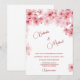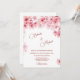 Vackra rosa akvarellkörsbärsblommor på en vit bakgrund med brud och brudgum förstfödda namn i ett elegant klassiskt kalligrafiskt skript.