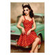 This vintage-inspired Cherry Bombshell art print features a fiery pin-up beauty with playful horns, a classic red polka-dot dress, and irresistible retro hot-rod attitude. Bold, flirty, and full of 1950s charm, the artwork blends old-school glamour with a mischievous dark-cute twist.