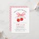 Cherry Bow Gifter sig Inbjudningskort för möhippan - Celebrate kärlek sötaste ögonblick med vår Cherry Bow Gifter sig Inbjudningskort för möhippan. Den här snygga designen visar att det spelas upp klara röda körsbär med en charmig rosa coquette-buk, som symboliserar två hjärtan. Ett vackert manus-typografi är elegant i ramar om den speciella dagen, vilket tillför lite sofistikering till stollig. Den omvända sidan är försedd med en kaskad av körsbär som skapar en glatt och sammanhängande bakgrund till inbjudan. Den här inbjudan är perfekt lämpad för en Möhippa Collection och anger tonen för ett firande som är lika sött, dynamiskt och charmigt som kärlek självt.