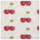 Vattentärsfärgning av två körsbär med räckvidd från mörkens burgundi till ljusnyp. En väv som kommer att lura alla som ser den. Röda körsbär som är kompletta med stjälk och en löv bildas på en vit bomullsbakgrund som kan bli en ridå, en bordduk, en dekorativ kudde eller något annat som ditt hjärta kan drömma om. Den här duon av röda körsbär är säker på att det är roligt!