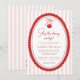 Cherry on Top Coquette Bow Pink Baby Shower Invitation - An adorable design featuring a hand drawn cherry hanging from a coquette bow with hand written and modern typography. The background is trendy pink and white stripes, the perfect way to celebrate your little one. Our easy to use template makes it so easy for your personalize your invitation. Cherry on top Coquette Bow Pink Baby Shower will be part of a Baby Shower Collection.