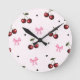 Cherry & Pink Bows Pattern - Coquette Aesthetic Rund Klocka
