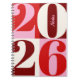 Artful and bold, this personalized spiral notebook features a bold four color design with large Arabic numerals to denote the year and one area of text for personalization with the notebook's use (notes, planner, school, a name, etc.). The design of modern bold blocks of cherry coded hues of red and pink with creamy white brings a feminine and fearless vibe with you into the new year, get ready to make it the best one yet!