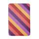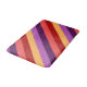 Ett medelstort badmatt med ett färgstarkt mönster-motiv av diagonalt rand i körsbärsröd, melonhaltig rosa, violett, plommonhaltig lila och gult av bananer.