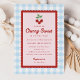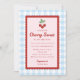 Fira din kommande baby shower med denna charmiga Cherry Sweet baby shower inbjudan. Med ljusröda körsbär i kombination med ett klassiskt blått rutigt mönster är denna design enkel, fräsch och perfekt för att välkomna en liten en. Idealiskt för vår- eller sommar shower, den erbjuder en ren och glad look som är lätt att anpassa för dina evenemangsuppgifter.