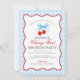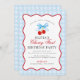 Cherry Sweet Blue Coquette Gingham Första födelsed Inbjudningar