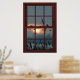 Cherry Wood Faux Window Illusion - Flock of Birds Poster