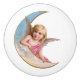 Cherub i rosa plagg på halvmåne.