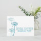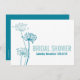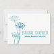 Dubbla-sidig, vacker, enkel akvblåshörd eller kvigor konturer blommor bröllop inbjudningskort för möhippan. En del av en stationär bröllop-uppsättning. Söt i vita och akvatiska tealskuggor. Redigera den här möhippan bröllop inbjudan med ett eget namn, data och en egen formulering. Enkel modern och bröllop inbjudningskort för möhippan med en modern blomma teckning i stil på kor parsley eller Anthriscus sylvestris, även kallad vild chervil, vild blev parsley, kreck eller drottning Anne's snöre. En exklusiv för elegant som utarbetats av Sarah Trett av Sarah Trett.