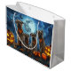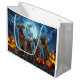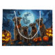 Släpp upp spookandan med den här eerie Halloween-designen med en hundar-förpackning under en mörk, månbelyst himmel, omgiven av flygande fladdermus och glödande pumpor. Perfekt för dem som kärlek en aning skrämmande roligt med sina hårigets vänner!