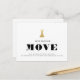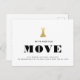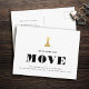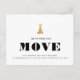 Vi har flyttat oss! Enkel typografisk utformning för ett vykort för flytta med tryckt guld-schack (kung) figurin. Den här svarta och vita, enkla förändringen av adress-anpassadet gör det snabbt och snyggt att nyheterna om ditt nya hem!