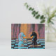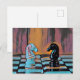Den här schackdesignen med vykort har klassiska schackknivar i biet på ett schackbräde med popkonformat.