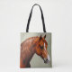 Porträtt om en häst av kastanjemajen Morgan med ett vackert rött jacka. Realistiskt konstnärligt verk skapat från en ursprunglig oljemålning av häst- och vildlevande konstnären Crista S. Forest.