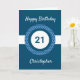 Ett 21:a födelsedagskortet i personlig blått, som du enkelt kan anpassa med den ålder du behöver tillsammans med namn på kortets framsida. Om du vill kan du enkelt anpassa insidan av kortmeddelandet. Den här personligen, 21:a födelsedagskortet för honom skulle göra ett underbart kort.