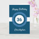 En personlig blå 36-årskort som du lätt kan anpassa med namn på kortets framsida. Du kan också anpassa insidan av kortmeddelandet om du vill. Personligens 36:e födelsedagskort för honom skulle göra en underbar keepy.