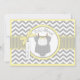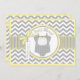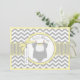 Chic grått och vit chevron med gultens kontrast och en söt polka-punktssymbol med en bock- och 3D-stift och band för ett pojkduschkort.