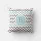 Chevron Grått Aqua White Monogram Bröllop Pillow Kudde