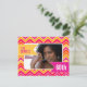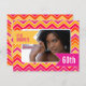 Chevron sicksack ljus het rosa, orange, vit, röd och gul dubbelsidig 60-års inbjudan. Ljus grafisk inbjudan anpassas med din egen ålder, festdetaljer och ett foto av din födelsedagsflicka. Unik design av Sarah Trett.