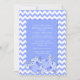 Vacker blå delftskt inspirerad bröllopsdusch-inbjudan i ett blått och vitt chevron-mönster, på framsidan dekorerad med blå och vita blommor längst ner. Ett periwinkleblått textområde med anpassad vit text är redo att anpassas. Inbjudans baksida är gjord i ett blått och vitt blommönster. Matchande festtillbehör finns tillgängliga.