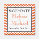 Snyggt anpassningsbar Spara datum magneter för att du aviserade bröllop, designad med en orange och vit zigzag chevron mönster.