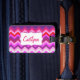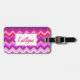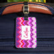 Snyggtens moderna zigzag-chevron-mönstrad grafisk bagagetapp i klara rosa-, rött- och lila multifärg-skapar påsar som är lätta att upptäcka! Perfekt för helgdagar och resor. Lägg till ditt namn och första namn längst fram på märkrn och anpassa märkrns baksida med ditt namn och information om adress. Ursprungligt mönster och utformat av Sarah Trett.