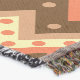Stora chevron-rand, omväxlade med prickar, bildar en modern design i rost orange, smör-gult och brunt med djup chokladbakgrund