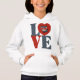 Kolla in Chibi Catshe inuti ett rött hjärta som representerar "O" i denna "KÄRLEK" staplade logotyp.