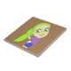 Chibi-flicka med keramisk bricka i svan kakelplatta