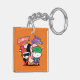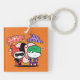 Kolla Chibi Joker som presenterar Chibi Harley Quinn med ett kort för hjärtspel, med namn skrivet ovanför ett stort prickhjärta i bakgrunden.